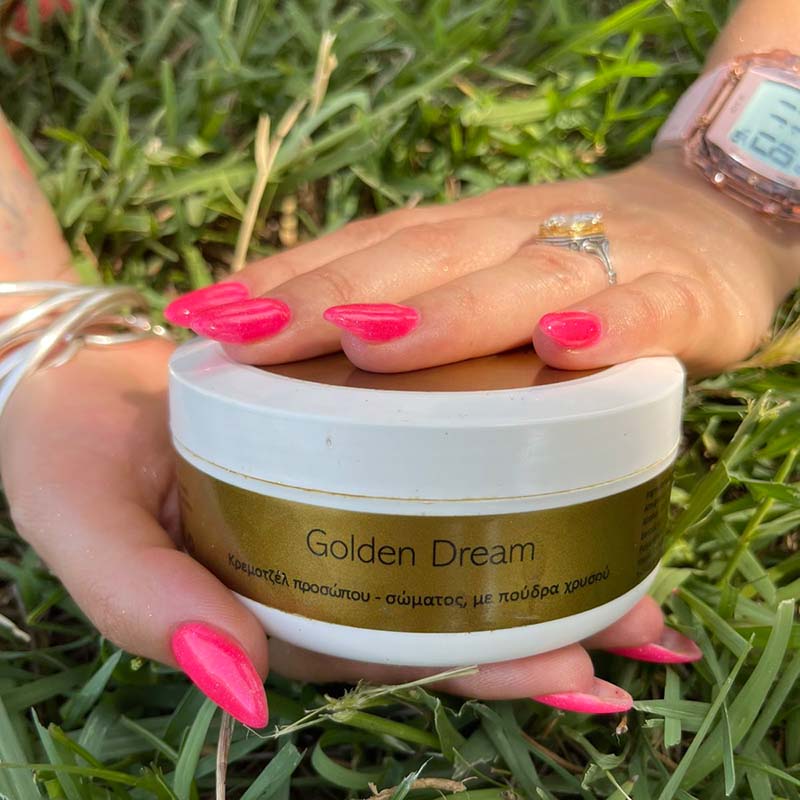 Η Golden Dream ενυδατώνει σε βάθος, απαλύνει και προστατεύει την επιδερμίδα σας, χαρίζοντας της φυσική λάμψη και φρεσκάδα. Εμπλουτισμένη με πούδρα χρυσού, φυτικά έλαια και βούτυρα, διατηρεί την υγρασία και αποτρέπει την ξηρότητα, ακόμα και στις πιο απαιτητικές επιδερμίδες.